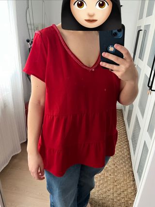 Camiseta roja con pedrería