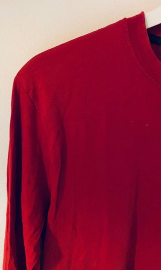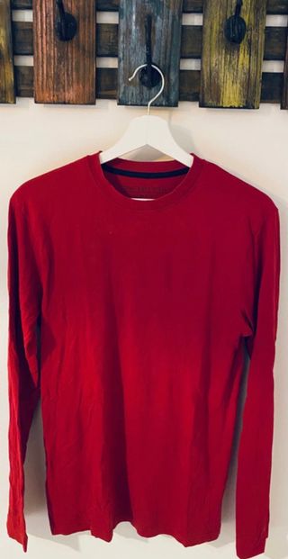 Camiseta lisa de manga larga con cuello redondo en color rojo. Camiseta talla S, modelo Slim Fit. Solo se realizan envíos 📦.