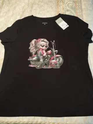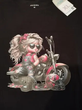 Camiseta Primark XL Dibujo Chica Moto