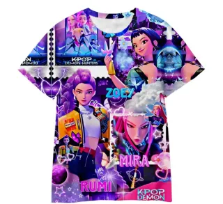 Camiseta con estampado vibrante de K-Pop Demon Hunters. Varios modelos y tallas - Diseño con personajes y elementos gráficos. - Estampado a todo color.