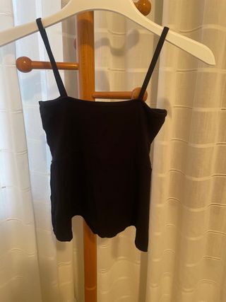 Camiseta sin mangas con un diseño moderno y favorecedor. - Tirantes finos. - Detalle fruncido en la zona del pecho. - Corte que estiliza la figura.