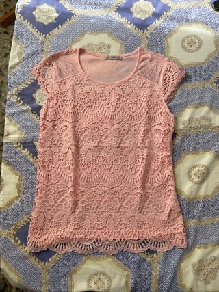 Camiseta IMPRESION rosa encaje manga corta