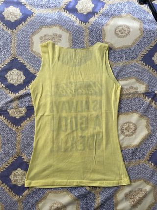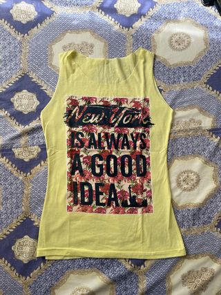 Camiseta sin mangas con un diseño vibrante y llamativo. - Estampado floral con texto New York is always a good idea. - Diseño sin mangas. - Base de color amarillo.