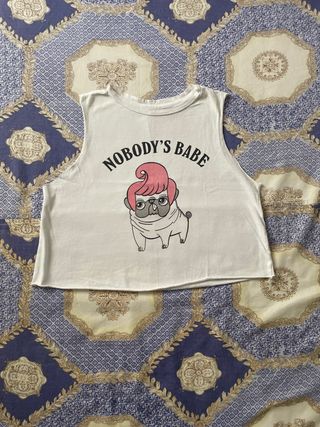 Camiseta sin mangas con un divertido estampado. - Diseño Nobody's Babe con un pug. - Corte crop top.