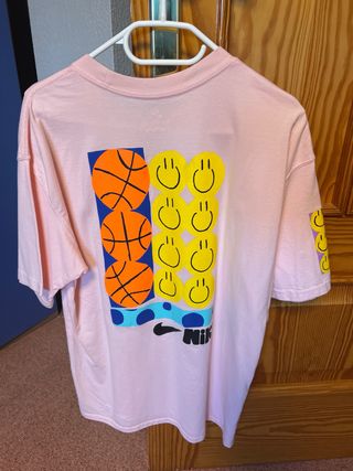 Camiseta de manga corta con un llamativo diseño gráfico en la parte delantera y detalles en las mangas. - Estampado multicolor con elementos de baloncesto y caritas sonrientes. - Logo de Nike integrado en el diseño. - Cuello redondo. - Manga corta. - Muy entallada. - Corta de largo.