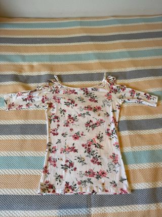 Camiseta floral con hombros descubiertos
