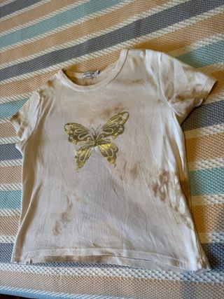 Camiseta beige con mariposa dorada