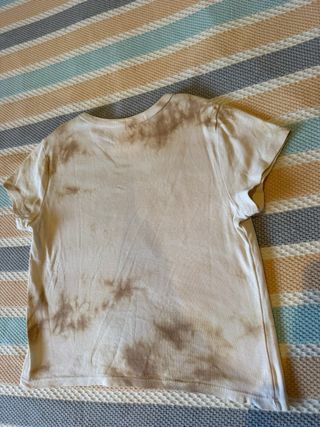 Camiseta de manga corta con un diseño de mariposa en la parte delantera. - Estampado de mariposa en dorado. - Base en tono beige con efecto tie-dye.