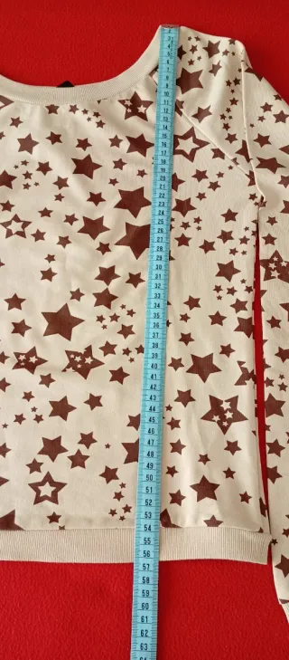 Tres camisetas de manga larga para mujer, ideales para un look casual. - Camiseta rosa de canalé, tejido aterciopelado.T XS - Camiseta beige con estampado de estrellas marrones sin estrenar de Lefties T M - Camiseta rojo con número 26 y texto BROOKLYN 1988. TS