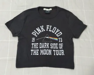 Camiseta de manga corta con estampado de Pink Floyd. - Diseño The Dark Side of the Moon Tour. - Detalle del prisma y arcoíris. - Estampado con efecto desgastado.