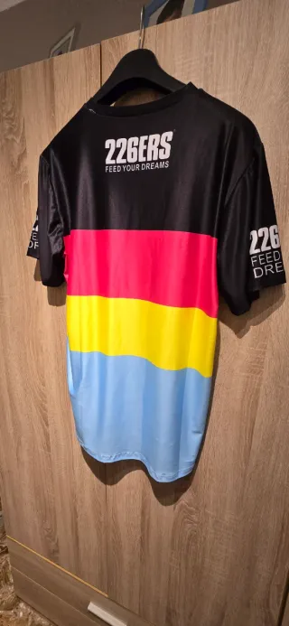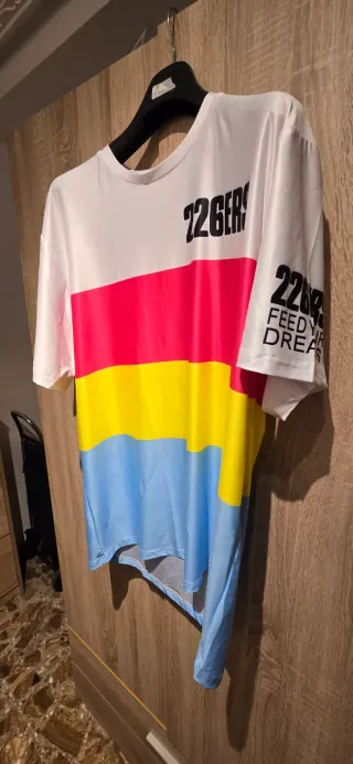 Camiseta de running de la marca 226ERS con un diseño llamativo y moderno. - Diseño de bloques de color. - Tejido ligero y transpirable.
