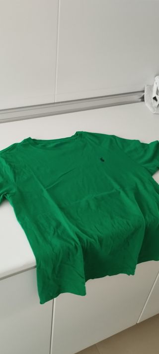 Camiseta de manga corta de la marca Polo Ralph Lauren. - Color verde vibrante y otra color gris - Talla L (equivalente a 14-16 años