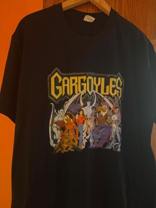 Camiseta de la serie de culto Gárgolas. El diseño es épico, pero aviso: el estampado no es de alta definición, tiene un aire más "retro" o difuminado (se ve en las fotos). Estado: Nueva, pero con ese toque de impresión antiguo. ¡Ideal si buscas algo barato de la serie!. El estampado no - Estampado frontal con varios personajes de la serie.