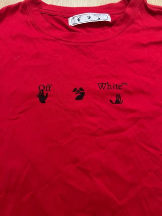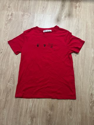 Camiseta de manga corta Off-White en color rojo. - Diseño con logo frontal. - Cuello redondo.