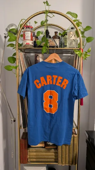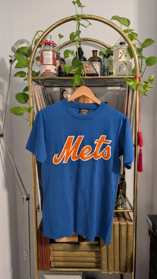 Camiseta vintage de los NY Mets, con diseño de Gari Carter. - Color azul. - Estampado frontal con el logo Mets en naranja y blanco.