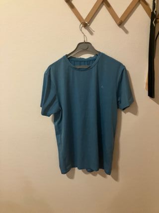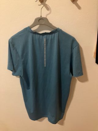 Camiseta de manga corta de la marca Boomeranga. - Diseño liso en color azul. - Cuello redondo. - Detalle vertical reflectante en la espalda.
