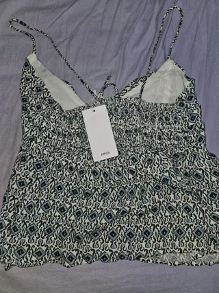 Camiseta de tirantes con un bonito estampado geométrico. - Diseño con tirantes finos. - Escote con detalle fruncido. - Tejido ligero y cómodo.