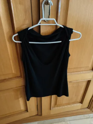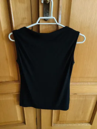 Top negro de corte moderno y escote pronunciado. - Diseño sin mangas. - Tejido suave y elástico. - Escote en V.
