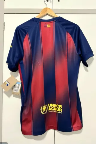 Nueva a estrenar con etiquetas,precio tienda 100€. Camiseta de fútbol del FC Barcelona para la temporada 25/26. - Diseño a rayas verticales rojas y azules. - Logo de Nike y escudo del club. - Patrocinador Spotify en la parte frontal.