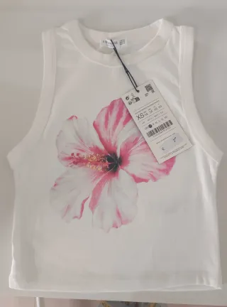 Camiseta tirantes Stradivarius flor rosa XS