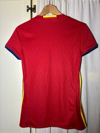 Camiseta de la selección española de fútbol Adidas para mujer. Cuello en V.