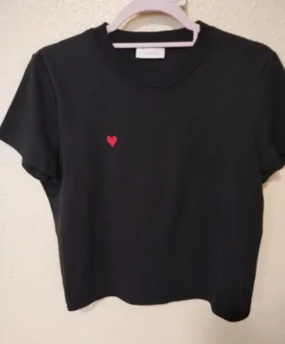 Camiseta de manga corta de la marca Kookai. Presenta un pequeño detalle bordado de un corazón rojo en el pecho. - Diseño minimalista. - Cuello redondo.