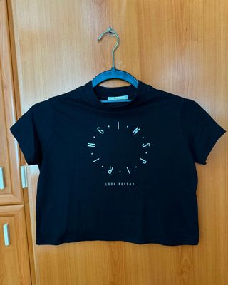 Crop top de manga corta para mujer. -Estampado de "LOOK BEYOND". -Diseño de cuello alto. Envíos en la mayor brevedad posible.