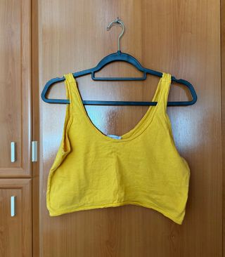 Crop top de tirantes para mujer. -Color mostaza, con cuello redondo. Envíos en la mayor brevedad posible.