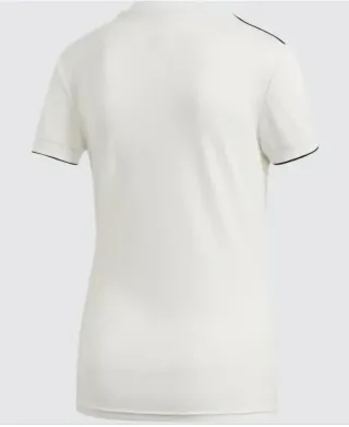 Camiseta de fútbol del Real Madrid. - Diseño blanco con detalles negros y amarillos. - Logo de Adidas y escudo del Real Madrid. - Tecnología Aeroready.