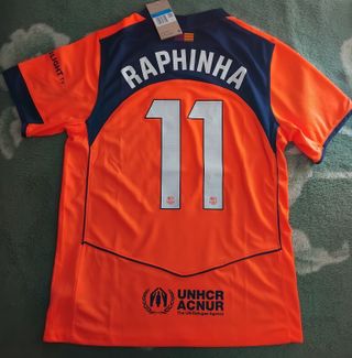 Camiseta de fútbol de Raphinha, número 11, de la marca Nike. - Diseño con detalles del club. - Logo de UNHCR ACNUR en la parte inferior. TENGO EL PANTALÓN POR 15€ más.