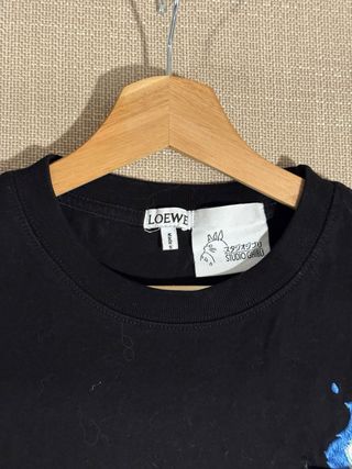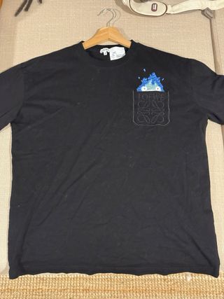 Camiseta original Loewe x Studio Ghibli Calcifer, color negro, talla M, 100% algodón y fabricada en Portugal. Bolsillo frontal con logo Loewe bordado y personaje Calcifer en relieve. Está nueva, sin uso, solo probada. #loewe #studioghibli #calcifer #howlsmovingcastle #camisetalujo #streetwear #modaanime #coleccionista #limitededition #portugal