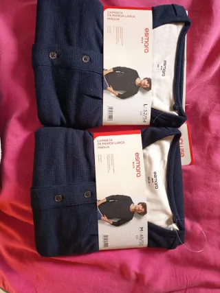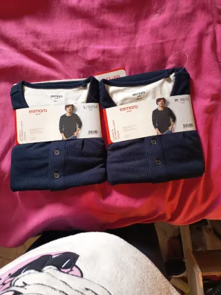 Pack de dos camisetas de manga larga para hombre. - Talla L (52/54) y M (48/50). - Cuello redondo con botones. - Tejido de canalé.
