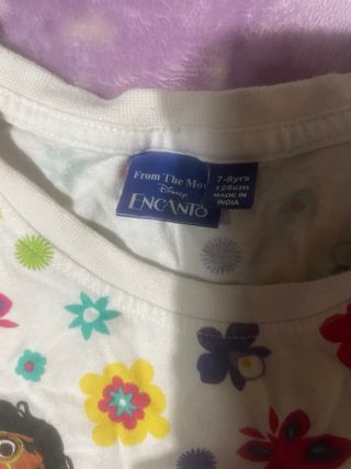Camiseta de manga corta para niña con un divertido estampado. - Diseño con personajes y flores. - Tejido suave y cómodo.