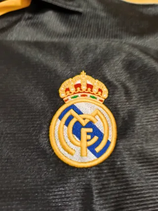 Camiseta de fútbol del Real Madrid de la temporada 1999/2000. - Diseño clásico con detalles en dorado. - Logo de Adidas y escudo del club. - Cuello tipo polo.