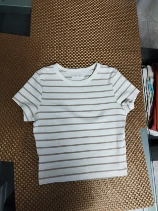 Camiseta corta de tejido acanalado. - Manga corta. - Cuello redondo. - Diseño moderno y versátil.