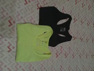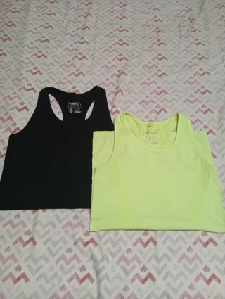 Conjunto de dos camisetas deportivas, una negra y otra amarilla. - Diseño de tirantes. - Tejido cómodo para el deporte.
