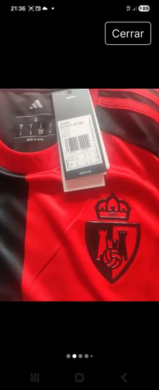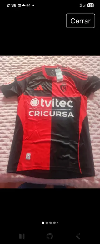 Segunda equipación de la Ponferradina. - Talla S. - Diseño con paneles en rojo y negro. - Logo de Adidas en la parte superior. - Escudo del equipo en el pecho. - Inscripciones tvitec y CRICURSA en el frontal.