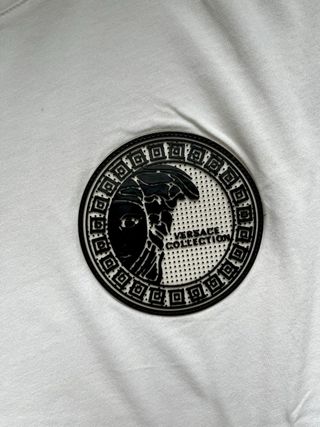 Camiseta de manga corta de la marca Versace en color blanco. Presenta un distintivo logo circular en el pecho. - Logo circular en el pecho.