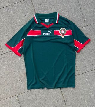 Camiseta de fútbol de Marruecos con diseño clásico. - Logo de Puma bordado. - Escudo de Marruecos en el pecho. - Detalles en rojo en mangas y cuello.