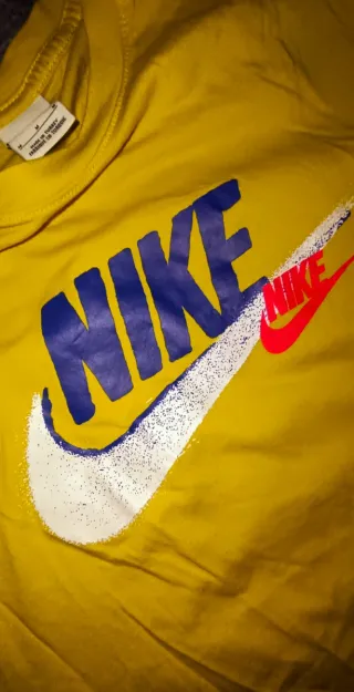 Camiseta básica de manga corta con el icónico logo de Nike. - Diseño con el logo Swoosh y el nombre de la marca. - Color amarillo vibrante.