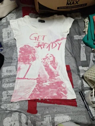 Camiseta con un llamativo estampado frontal. - Diseño GET READY. - Estampado en tonos rosa y blanco.