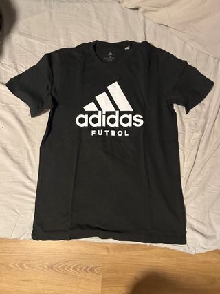 Camiseta negra de Adidas con el logo de Futbol. - Logo de Adidas en blanco. - Diseño con el eslogan FUTBOL debajo del logo.