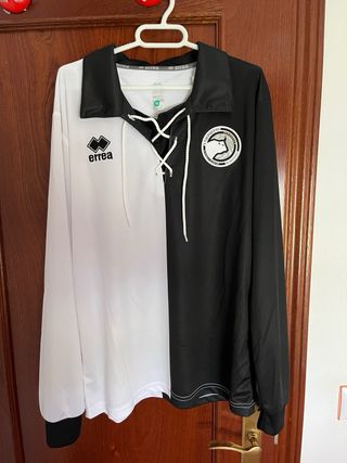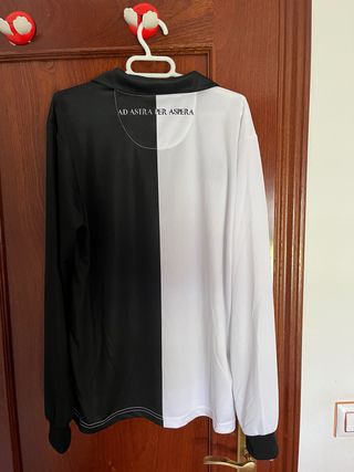 Camiseta de Unionistas con un diseño retro y bicolor. - Manga larga. - Cuello tipo polo. - Inscripción AD ASTRA PER ASPERA en la nuca.