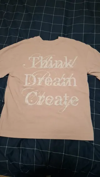 Camiseta de corte oversize para hombre. - Color rosa pálido. - Diseño con texto bordado en blanco.