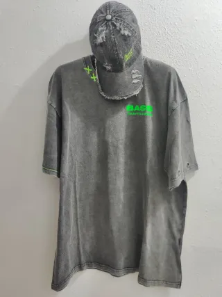 Conjunto de camiseta y gorra de la marca Headbang Dealers. El diseño es moderno y urbano. - Camiseta de corte oversize. 25€ - Gorra con detalles desgastados. 15€ (precio promocional por pre-save) - Detalles en color verde neón.