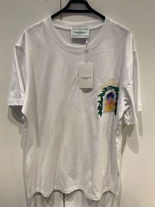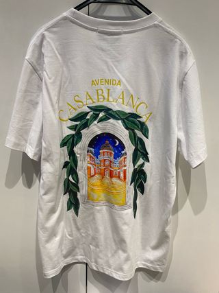 Camiseta de la marca Casablanca con un diseño gráfico llamativo en la parte delantera.👕 - Estampado frontal con casa y motivos vegetales. - Cuello redondo. - Manga corta. - Nueva con etiquetas✅ - Envio en 24h🚚