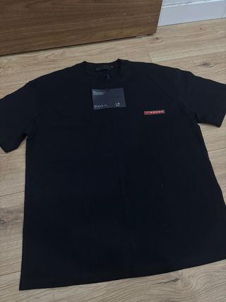 Camiseta de la marca Prada en color negro. Presenta un discreto logo de la marca en la parte frontal. - Talla M👕 - Nuevo con etiquetas✅ - Envio en 24h🚚
