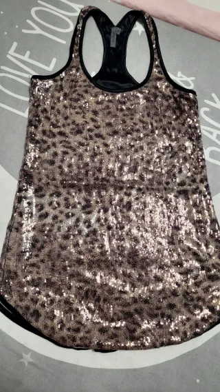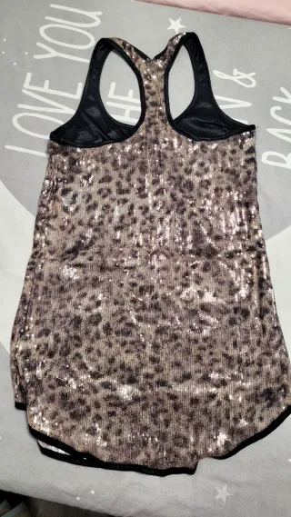 Camiseta de tirantes con lentejuelas y estampado animal print. - Diseño llamativo con lentejuelas. - Estampado de leopardo. - Tirantes estilo racerback.