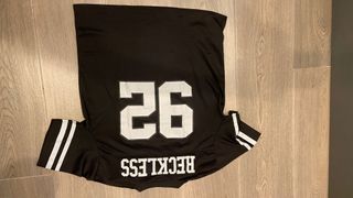 Camiseta negra con diseño deportivo. - Número 26 en la espalda. - Detalle de rayas en las mangas. - Nombre RECKLESS en la parte inferior.