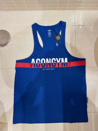 Se vende camiseta de tirantes, modelo Stringer, de la marca AGONGYM. Es una talla XL y lleva el logo de la marca en el pecho, de color blanco con una franja roja. Está completamente nueva, nunca se ha usado; todavía conserva la etiqueta original. #agongym #stringer #camisetadeportiva #ropagym #ropafitness #gymwear #culturismo #entrenamiento #halterofilia #fitness